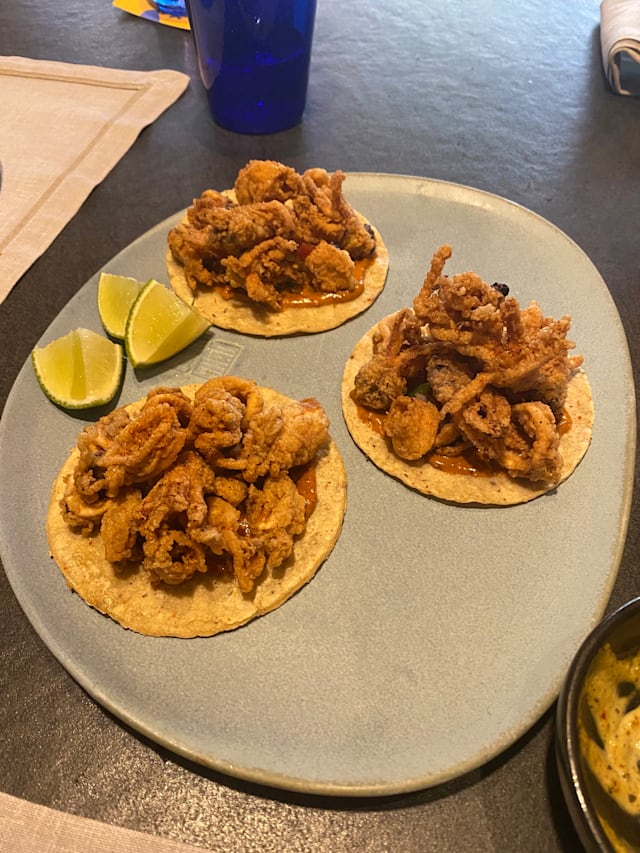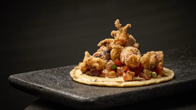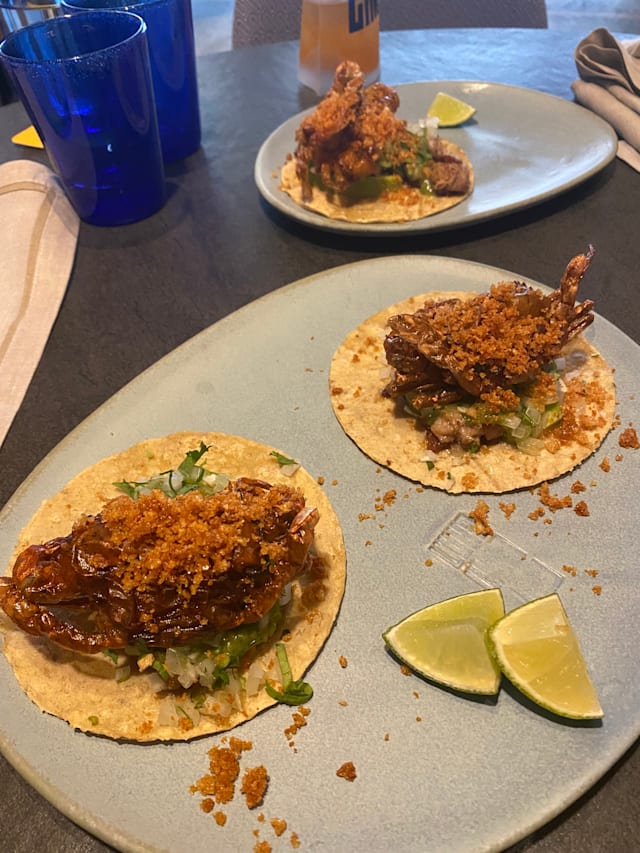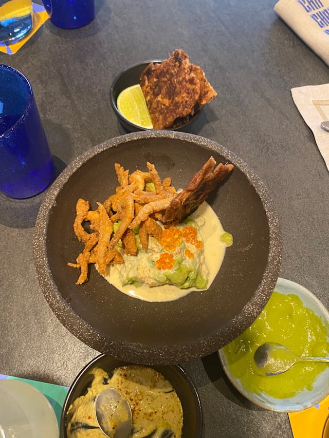 Tostada de ceviche de carabinero con salsa de chile costeño