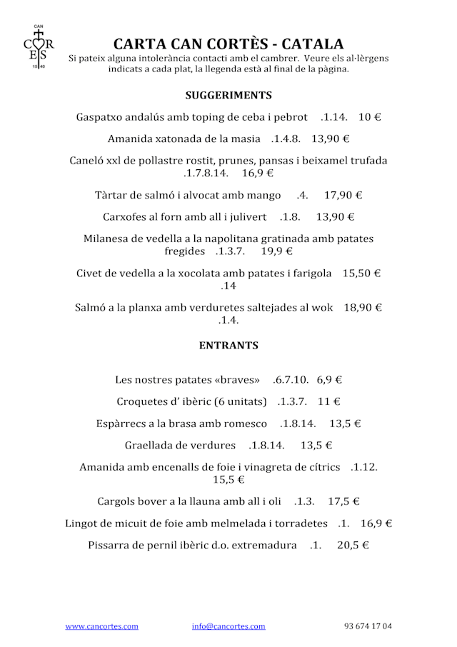 9/10Well presented restaurant in the Collserola natural park - we had a nice walk from Tibidabo to Can Cortes and enjoyed the Day Menu with - for the price - is very good value. Food was plentiful, service was warm, setting and view great.