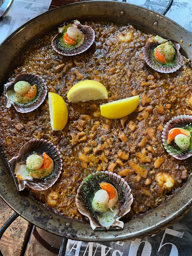 7.5/10Perfectly cooked Paella, Chipirones and Sardines. Not the best I have tried in BCN, but certainly solid. Ambience is ok, weird smell coming from the area that was little off putting.