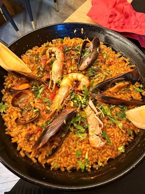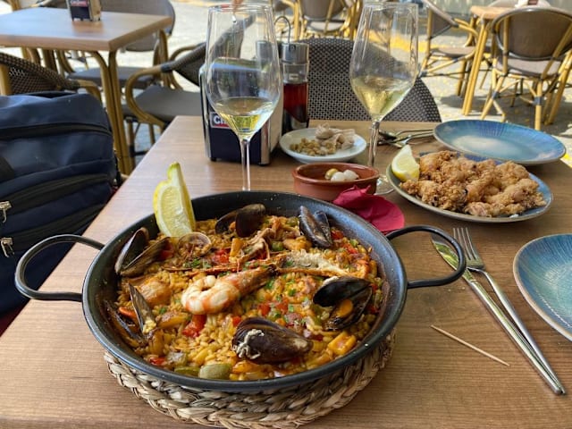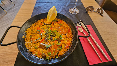 9.5/10Their vegetarian paella with a slice of lemon is so good! And it pairs perfectly with a cup of their white wine. 100% recommended (they have options for 1 person and 2 people). They have both a terrace and tables inside, I appreciated to have the option to sit inside far away from the noises of the street.