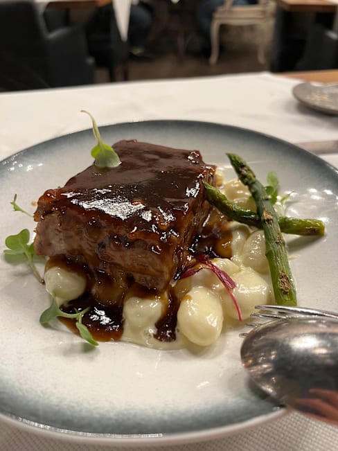 9/10+3The food was excellent. In general all the service around it was also very good. But the waiter seemed a little hectic trying to keep the good service for all guests, and I’d rather feel he has everything under control. I noticed this mainly when serving the wine. Ambient very nice, but the background music was a little too low.
