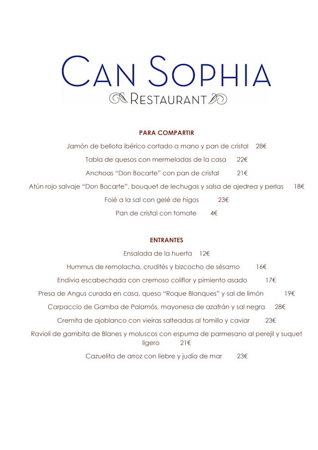 10/10Can Sophia is truly the best restaurant in Tossa. We dined at Can Simon the one night and Can Sophia another. While both are wonderful, four of us unanimously agreed that Can Sophia had the edge in overall quality and creativity. Kudos to the Chef and Service team and Can Sophia. I recommend requesting a seat outside in the inner courtyard for a magical ambiance to match you culinary delight!