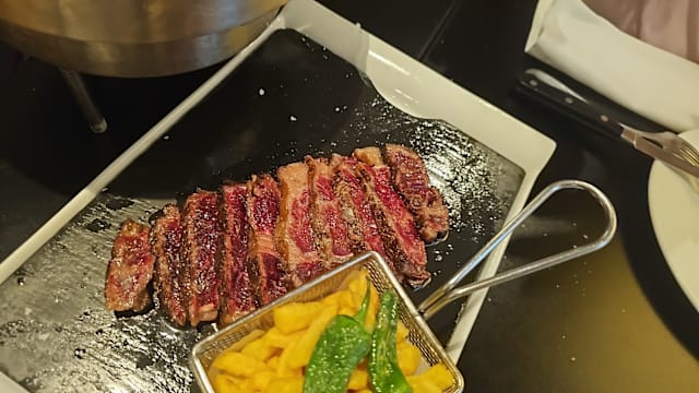 6.5/10The quality of the meat is good, especially the "solomio de buy" is excellent. They serve it including a hot "stone", where you can "finish" the coocking how you want it (more or less crude). The ambience is a bit cold, more hotel like. But my issue is a bit more with the quantities. On the card is says you get 500gr of meat, but when they serve it, it is more like 120 gr. (that is what the waiter said himself). I am no big eater, so it was just OK for me, but paying 65 euros a person with a glass of wine a shared dessert, feels a bit short.