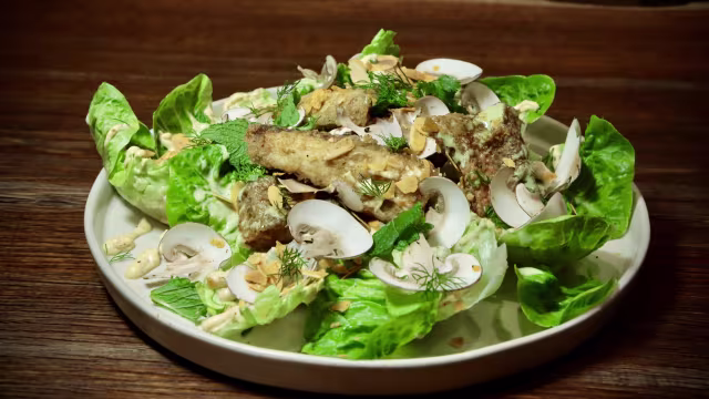 - De pato pekín, hoisin, ensalada fresca de puerros, pepino y hierbabuena