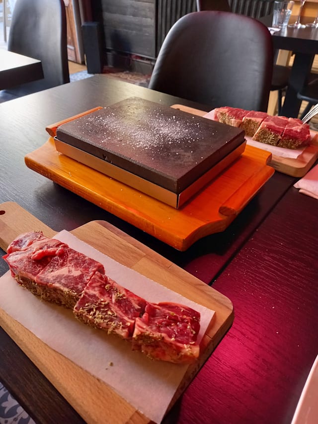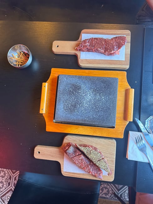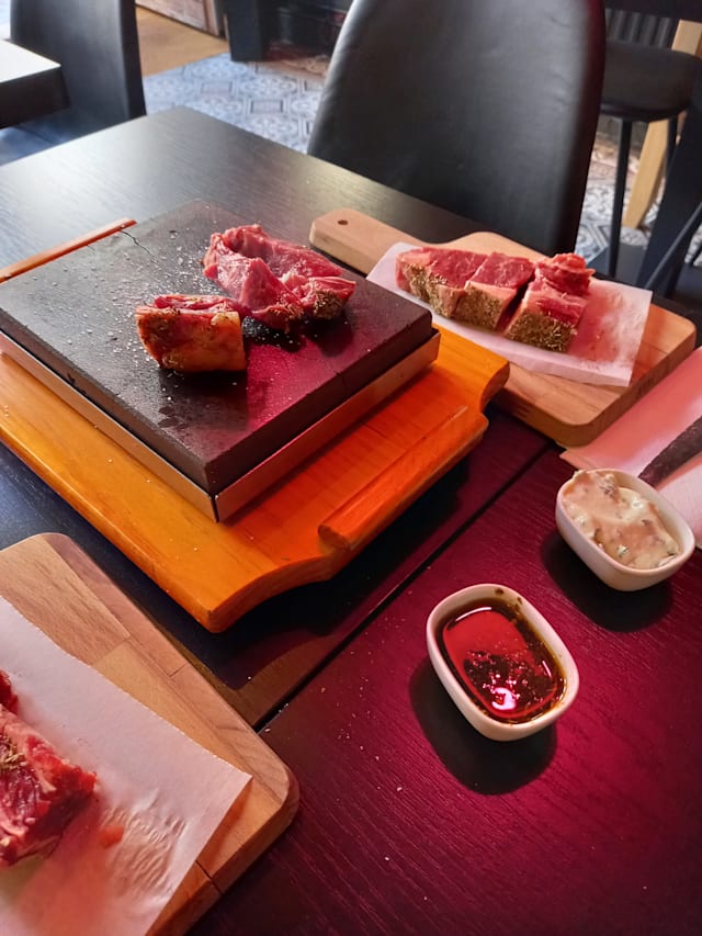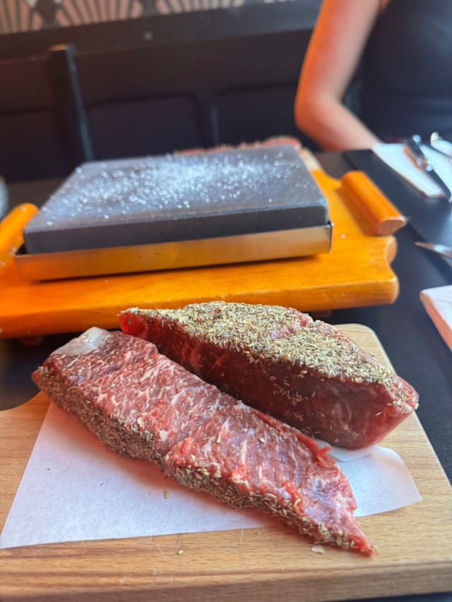 10/10Very much recommended. Great for a date and great to go with a group of friends. Always nice to have a hot stone to grill the meats on, makes it a bit more interactive and engaging. Good Wines as well. Definitely a place to go again and again.
