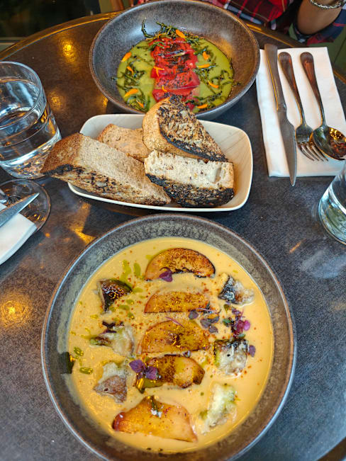 9.5/10We had the three 'to share' dishes, which were all very good. The main courses were also excellent, and the dessert was delicious