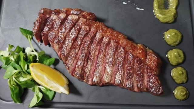 Tagliata di controfiletto di manzo con soncino e scaglie di grana