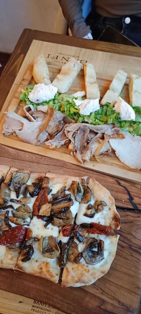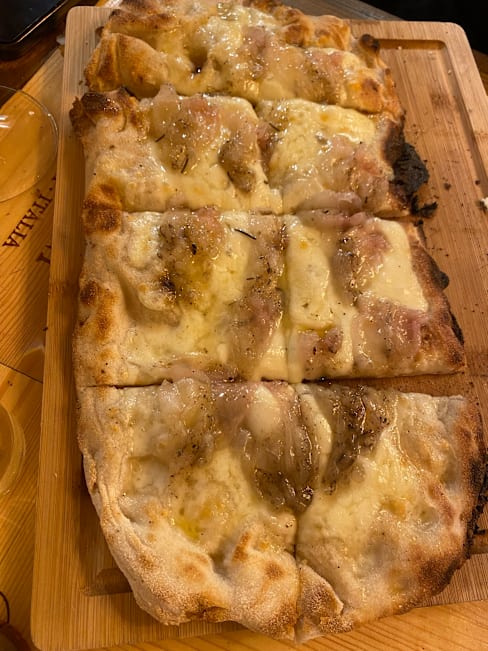 10/10Great wines, Primitivo and Valpolicella. Since I am trying to avoid too many carbohydrates, the plate of Tuscan cheese and meats with some bruschetta, greens, and artichoke was a proper balance for me. My wife liked the pizza bianca with artichoke.