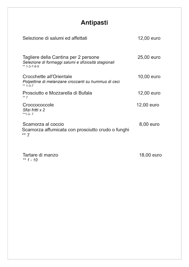 10/10Very nice restaurant at the end of à small street on the downtown of Marino. Nice personnel and excellent food. I chose it based on the Fork and trip advisor rating. We haven't been disappointed. The owner place us on the terrace which was perfect. I really recommend the place.