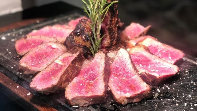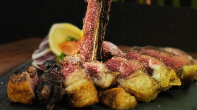 Tagliata di costola di bistecca con rucola e grana