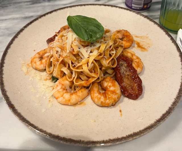 Di gamberetti, pomodori secchi e basilico