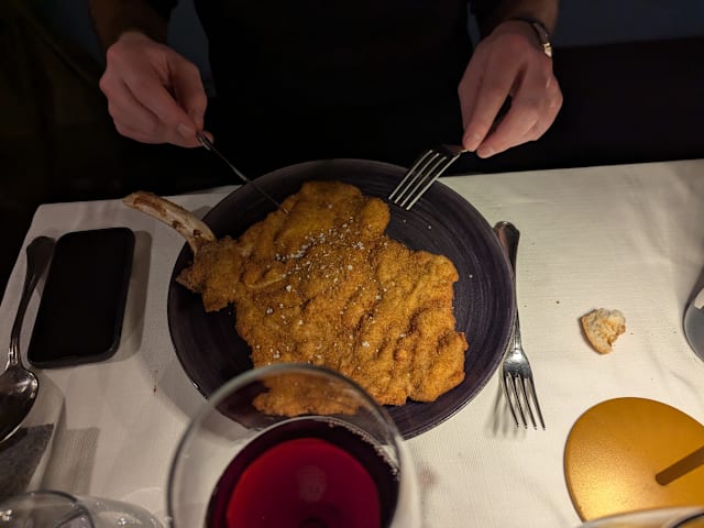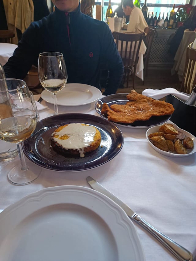 3.5/10The food was very very mediocre at best- even the bread wasn’t great! And they charge a service fee of EUR 3.50per person and “disguise” it on the bill. The wine, which we ordered based on the server’s recommendation was not worth the EUR95 we paid and I realize the typical restaurant mark ups! Breaded veal was DRY! Tomatoes w basil barely contained any basil. Pasta was grey! That was the color, not the taste but it didn’t help the taste! I saw another review calling this place a “tourist trap” and all I have left to say is that I agree! Soooo many superior restaurants in Milan to choose- don’t make the same mistake we did!