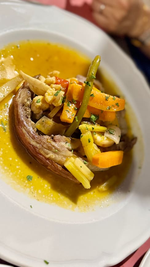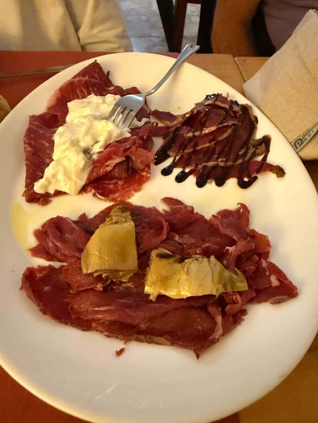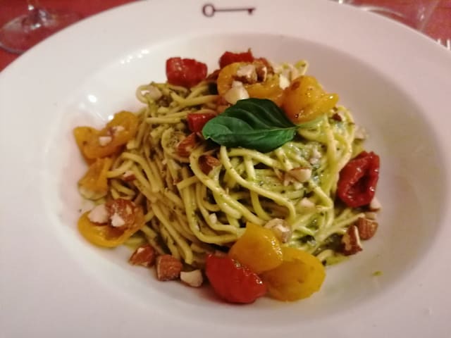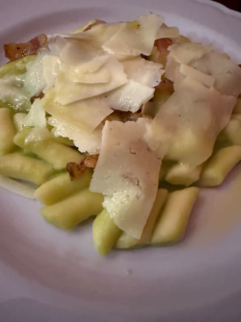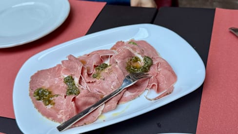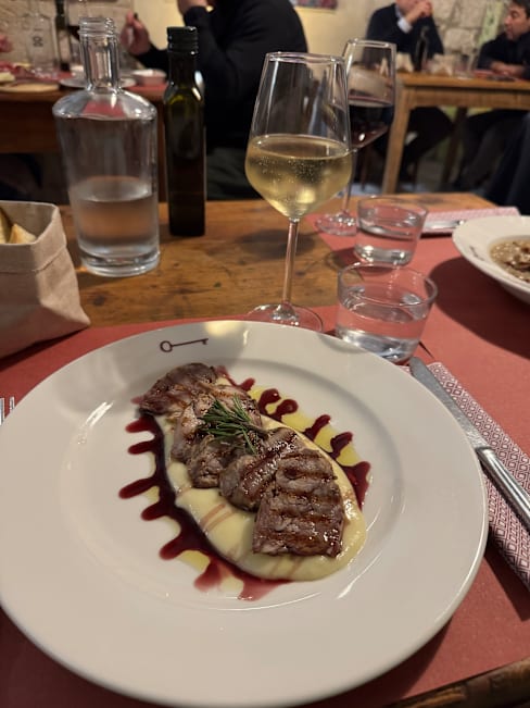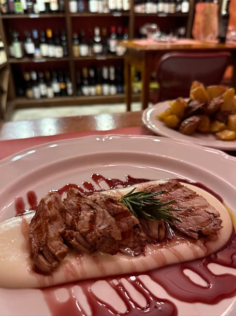 10/10+3Amazing first meal in Sulmona! Abruzzo wines are outstanding — smooth, full-bodied reds that totally won us over. Every meat dish was perfectly cooked: the lamb gigot was tender and flavorful, the rolled lamb had zero gaminess, and the green peppercorn beef steak was juicy and well-balanced. We also loved the regional Chitarra pasta — springy texture with bright tomato sauce and fresh cheese on top. So simple, so delicious. Great food, warm service, and excellent prices. Easily one of the best meals we had in Italy!