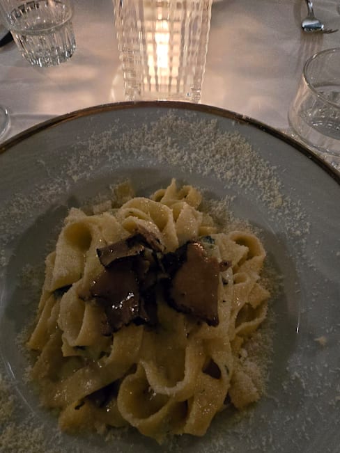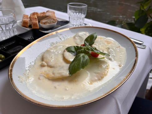 9/10excellent terrace and location. PINSA ROMANA is not 2person, truffel is canned. TARTARE DI MANZO was very nice with good cake. RAVIOLI RICOTTA E SPINACI was very good. excellent sauce. FILETTO DI MANZO AL VINO ROSSO was absolutely perfect. came medium pink instead of rare but would order again! excellent sauce. AFFOGATO ALLA VANIGLIA was nice but there were ice crystals inside