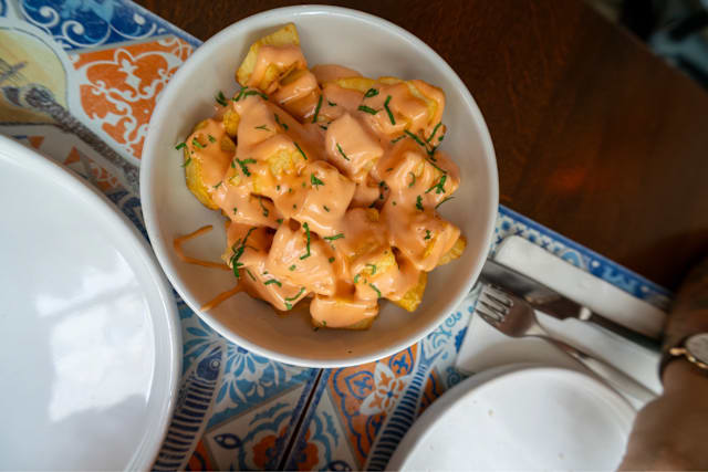 8/10Food was great, sangria was good, atmosphere was nice. Good playlist. The flickering lights were sometimes a bit much. Service was mostly very good but the one server seemed to be stretched thin at times and we waited a long time for our bill as a result. Overall would recommend and would revisit.