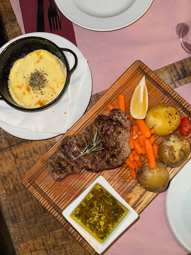 8.5/10The restaurant itself was a bit too hot. We had the pork for 2 and it lacked a bit of seasoning. We also had the enchidos appetizer, which was quite good