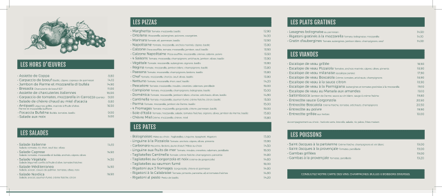 9.5/10Good italian restaurant Pizza is very good with fresh ingredients Pasta is fabulous Wine list optimal If you like italian food it is the place to visit