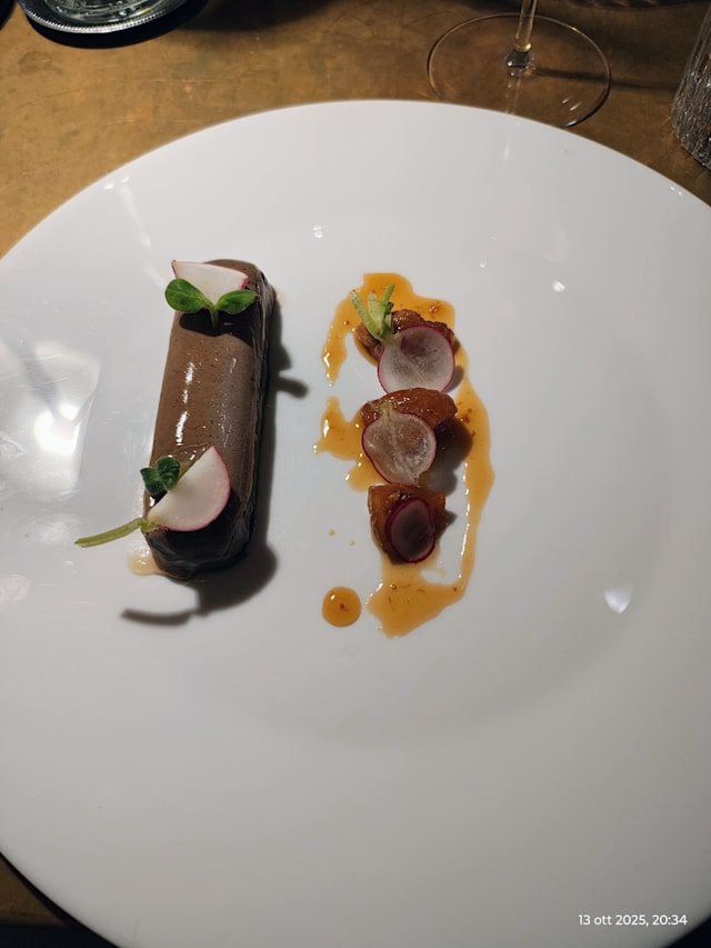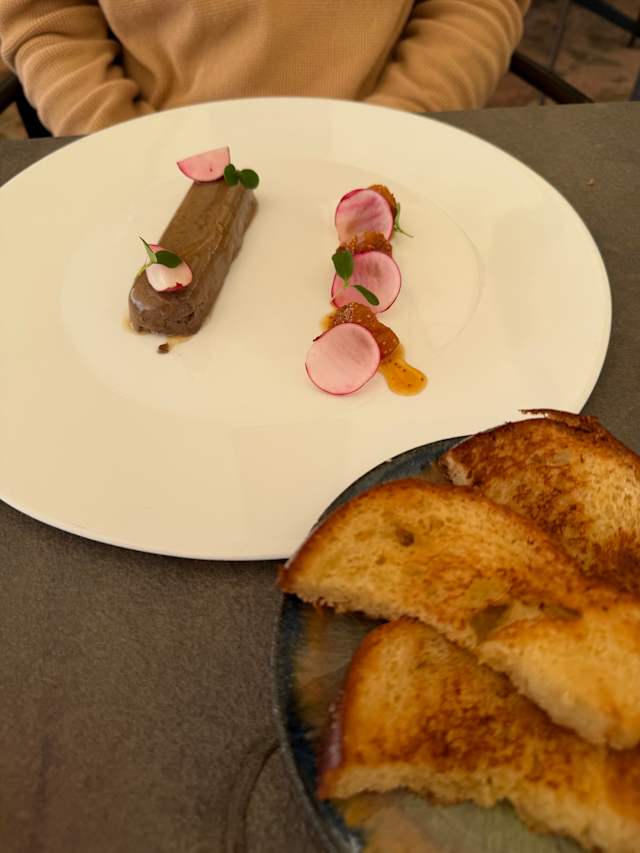 Terrina di fegatini, vinsanto, fichi caramellati, pan brioche e ravanello