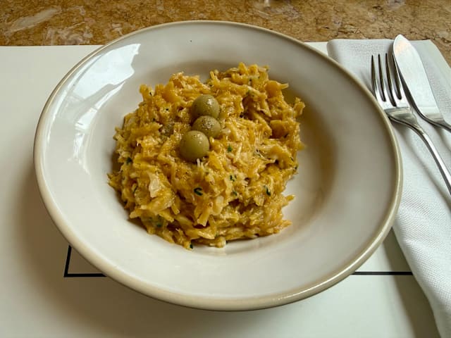 7.5/10On the starters, the raw marinated corvina was excellent, but to receive only four deep fried green beans for 7.50 euros was outrageous. The main course creamy pasta with prawns was bland with few prawns, again underwhelming, and any serious cook could easily do better at home. We were disappointed because the quality of the food at Mare, Avillez signature restaurant was excellent and prompted us to his cafe in Cascais. But there, in addition to mediocre food, one suffers that the establishment attends to a small gang of Glovo and Uber eats drivers hanging about with their mopeds right at the outdoor entrance, which kills the ambience as well as the service.