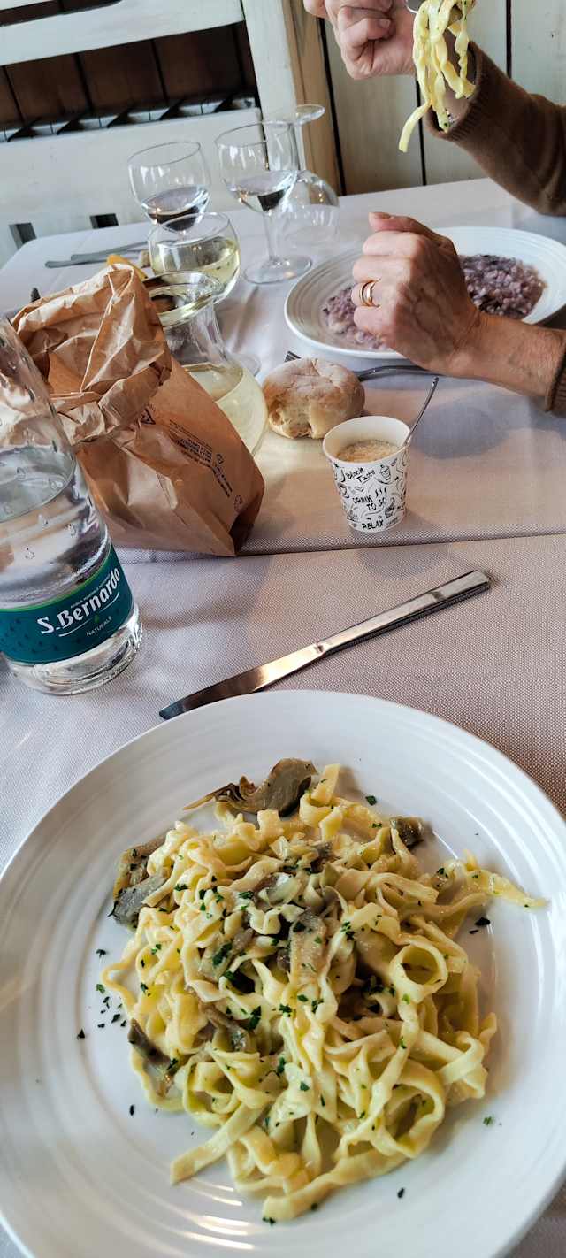 - Pennette al cantuccio con pancetta, funghi e pomodoro