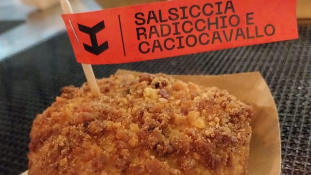 Salsiccia, radicchio, caciocavallo, panna, vino rosso, aglio, olio extravergine di oliva, sale.