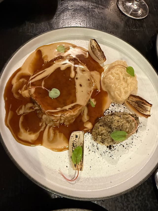 7.5/10The apetiter was perfect, fish was average and meat was disaster - cold, not soft and well done … Choice of local wines by glass was nice.