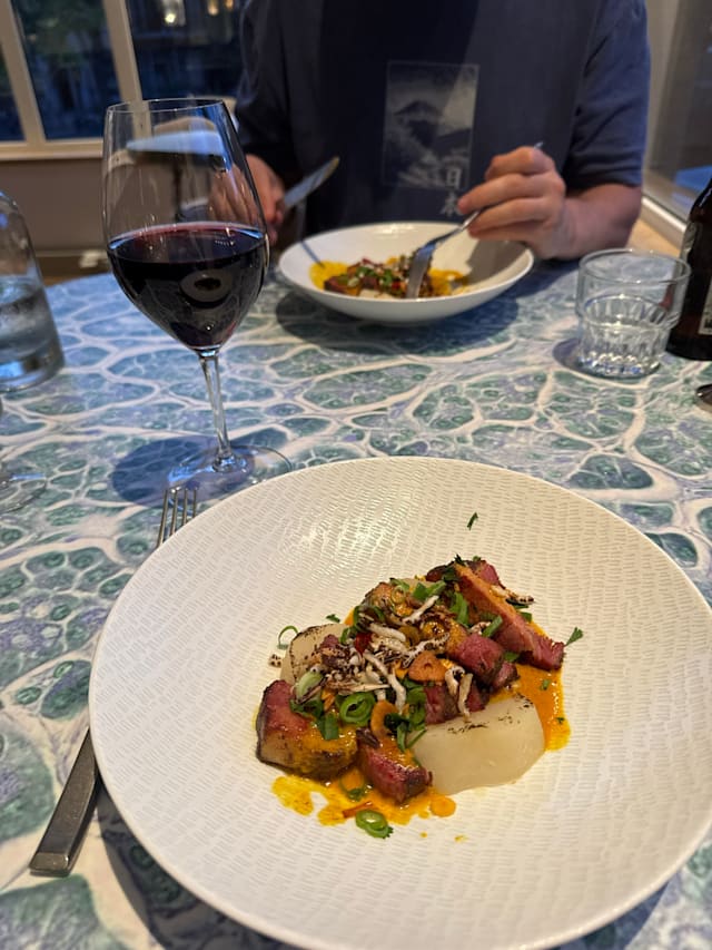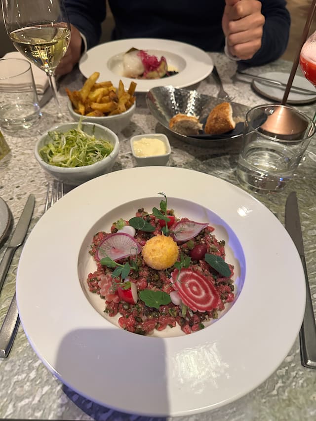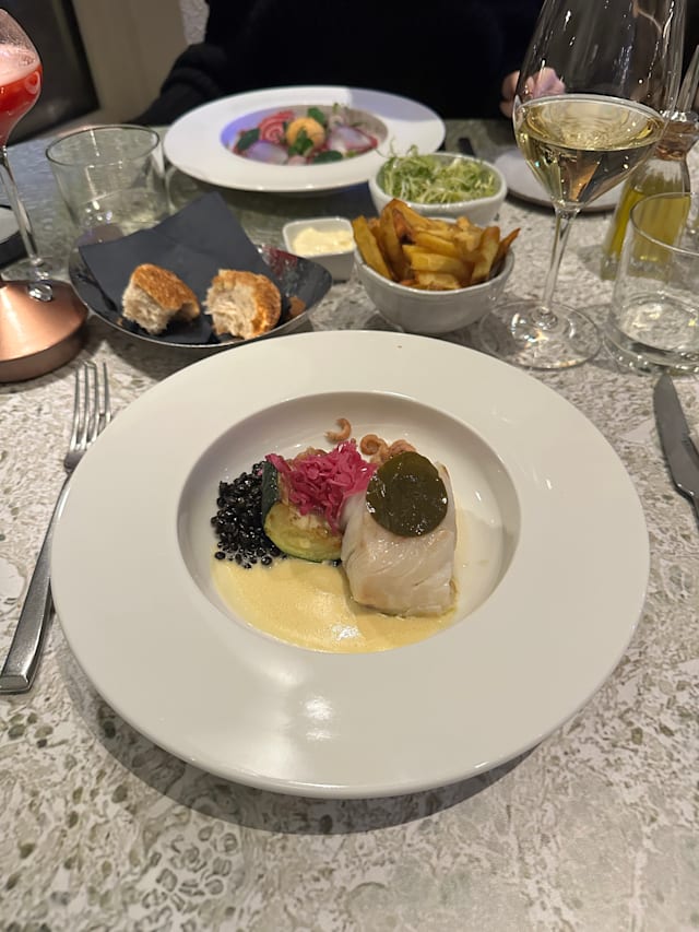 9/10It was the night before the King’s Day celebrations and the restaurant was rocking when we arrived. The owner kindly offered us free drinks (as we are in our 60s he probably thought this would have been off putting for us. The waitress (who was from Finland) kindly explained all about the King’s Day celebrations (we hadn’t heard about these before) and was great at giving advice on the menu and on wines. We had a lovely evening. My husband particularly enjoyed his halibut starter. We had a table with a view of the canal which was also great. We would highly recommend this restaurant.