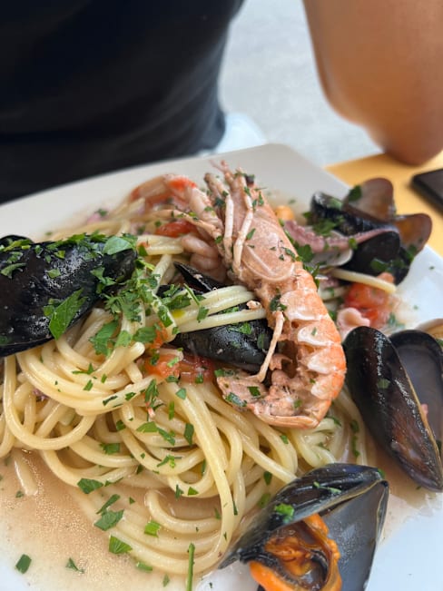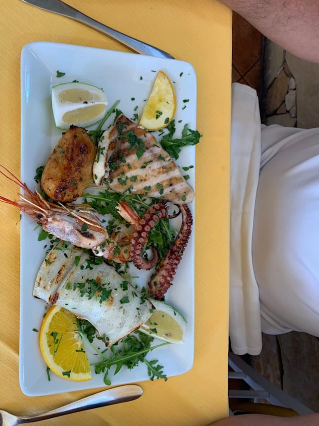 10/10We had dinner yesterday at Capitano Uncino. We had reserved a table. We arrived earlier than the time of the reservation. The staff was very friendly and asked us to wait for a while so that they could give us a table by the sea. They offered us a glass of prosecco to sip while waiting. We didn't actually wait longer than 5 minutes. The food was delicious. We had two starters (bruscetta di pomodoro and parmeggiano di melanzane) and two first ( gnocchi with gorgonzola and risotto di mare) the portions were big and we were stuffed 😄 always room for a dessert 😉 though. We had the canolo 😋 yummy. We definitely recommend this restaurant in Giardini Naxos. We will come back !!!
