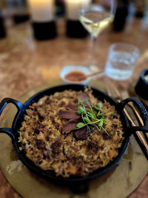 7/10The staff was 5* from the start, the restaurant’s aesthetic is stunning with a calm and elegant vibe. I went for my birthday and was surprised with a little cake, very thoughtful! The duck croquettes are a must-try, but overall the food didn’t meet our expectations. The duck rice was dry and the entrecôte didn’t have the truffle sauce and it was a bit flavorless. Still, I recommend visiting, the service and ambiance are worth it and you might enjoy other dishes more than we did!