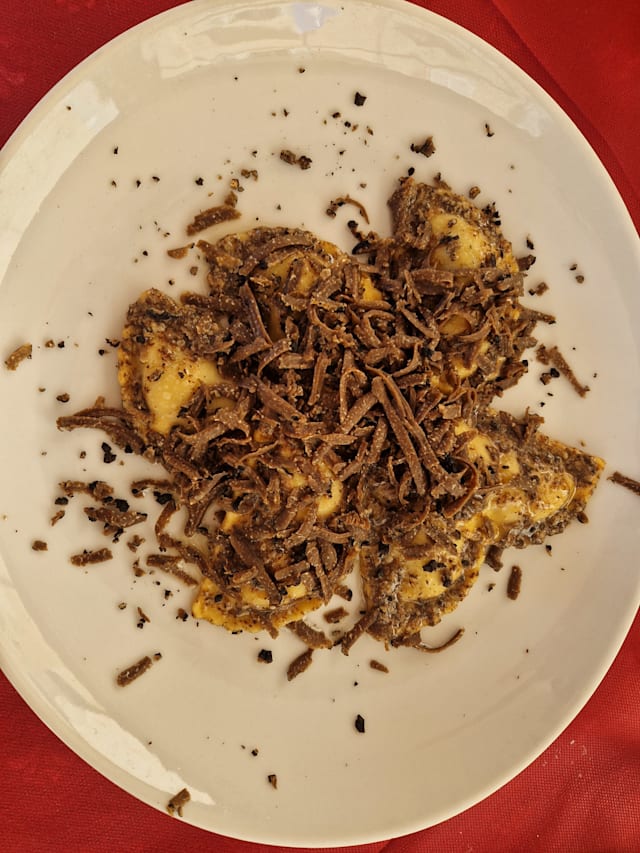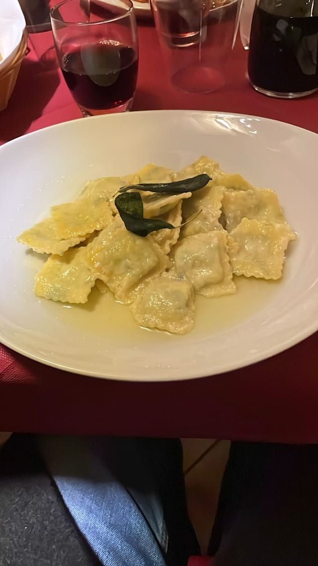 Raviolacci casarecci al farro con formaggio, noci e salvia croccante