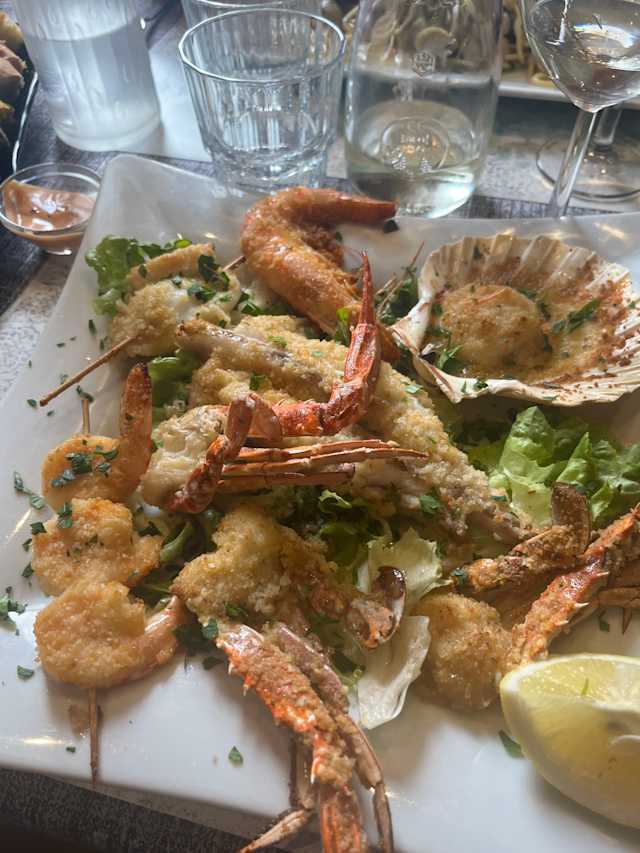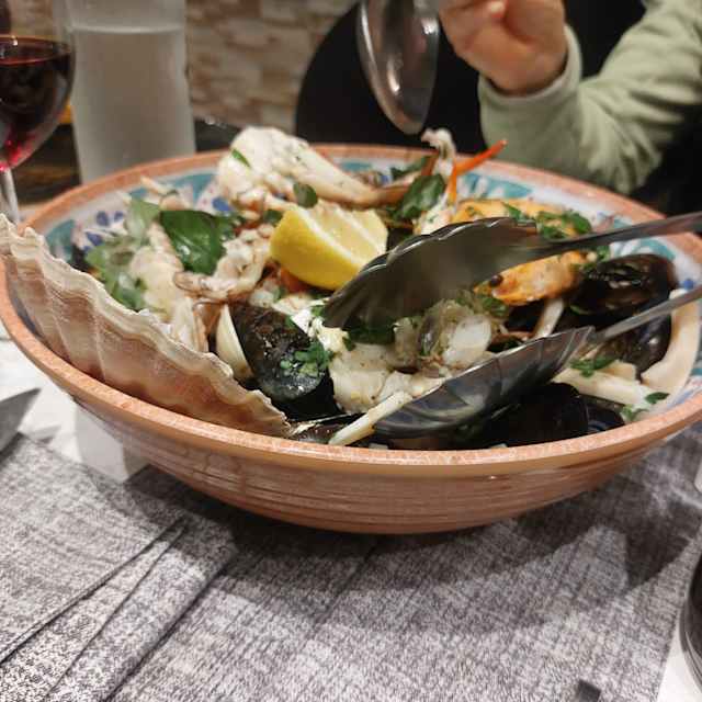 7.5/10A mainly-fish restaurant with great service, although they also have some meat dishes (e.g. tagliatelle al ragu). Food is somewhat standard, nothing was bad, but there was also nothing really special. The appetizer is a welcome free treat and in our case it was a delicious polenta with cheese.