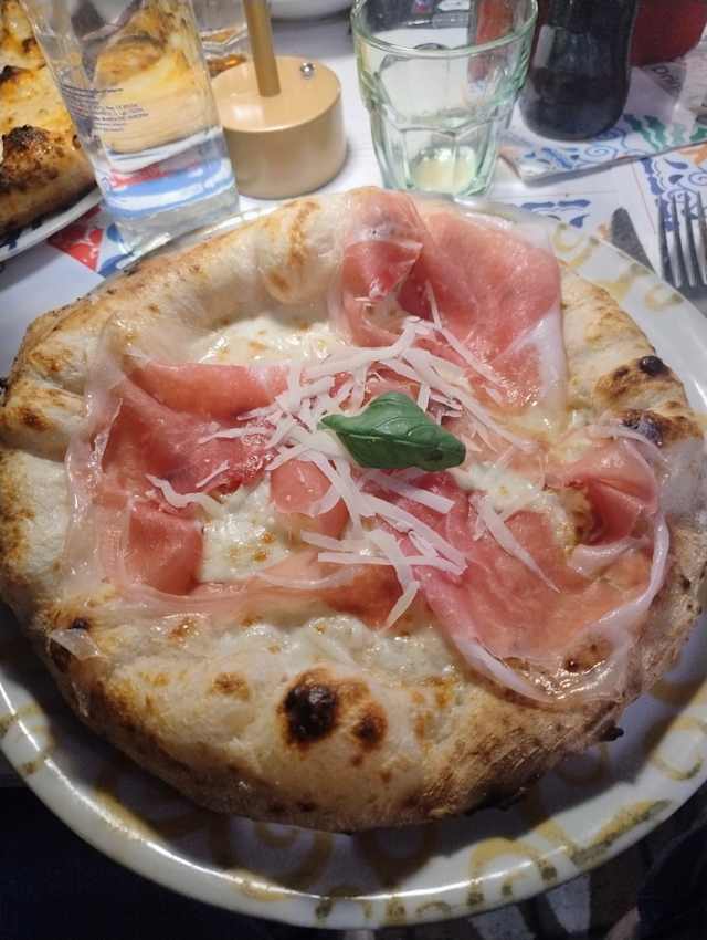 - Fior di latte di agerola dop, prosciutto crudo di parma 24 mesi, scaglie di provolone del monaco DOP, olio EVO e basilico