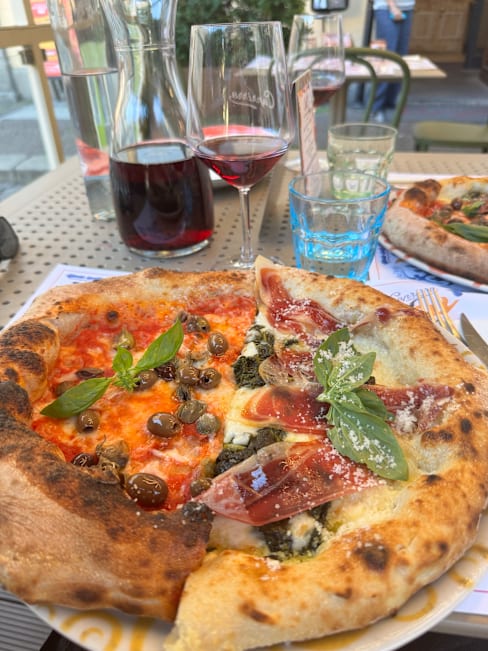 6.5/10Starter was massive and generally very nice. Bit heavy on the fried food but pretty good. Staff were nice and the young lady server really helpful. Pizzas were a disappointment quite heavy and honestly not the greatest. House red was very nice though
