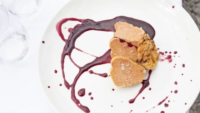 Mi-cuit de pato sobre caramelo de oporto, jalea silvestre y brioche