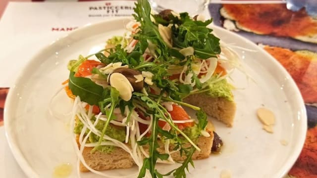 PIADINA KETO A BASE DI MANDORLE CON BURGER SALMONE E VERDURE DI STAGIONE
