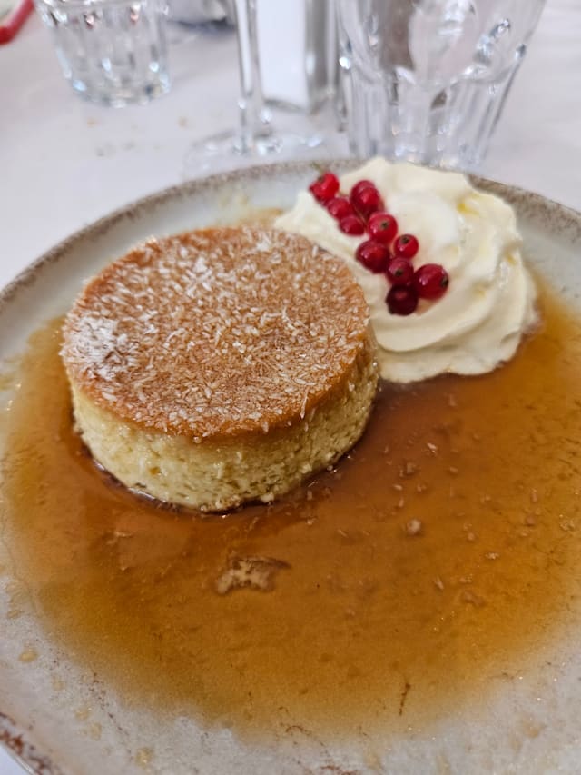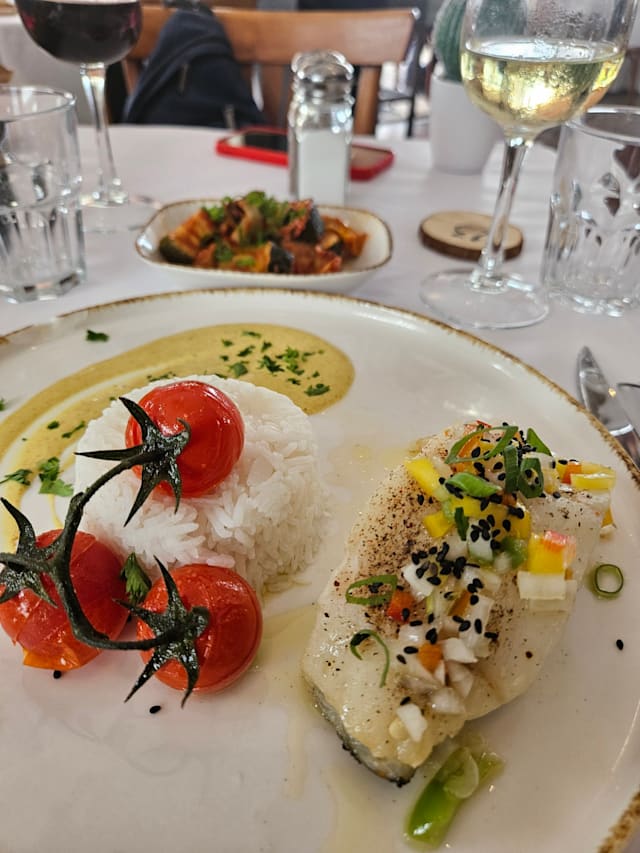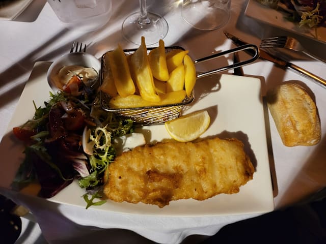 9.5/10Very friendly staff. The chef came to speak to us after we had sent our compliments. The meal (sea bass) was perfect. They showed us the fish before cooking . Filleted expertly and delicious. My rum baba too was large and very tasty. We’ll be returning for the live music evenings.