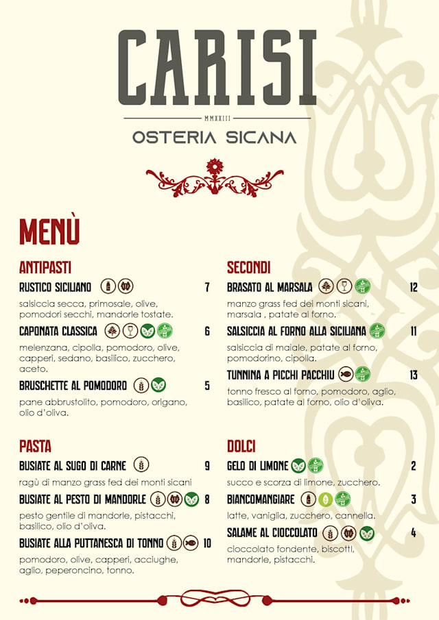 Carisi Osteria Sicana is identified as offering italian cuisine.