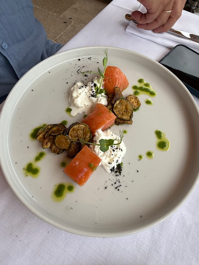 10/10I had the blue crab risotto for my primi and the baciola for secondi. Both were excellent. Everything on the menu is so delicious that you really can’t go wrong with any choice. My wife had the salmon and it was cooked to perfection. Highly recommend Carlo Quinto because it is right on the ocean and the views and atmosphere is so amazing.