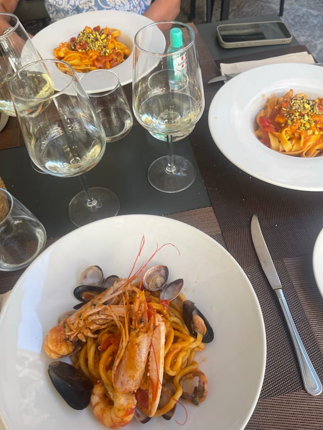 10/10Family origins in Catania, Sicily. As Italian-Americans, we cook more traditionally and were desperately seeking TRUE, TRADITIONALLY made Pasta con Sarde (pasta with sardines as we can not get the true Sicilian ingredients at home). Found Carlo V and had a spectacular pasta con garden. Fantastic local wine, superb service-we are al fresco. Not rushed. Menu had a large, diverse selection of local cuisine. Daughter had pasta alla Norma (made with eggplant). Also superb. Absolutely don't miss this restaurant.
