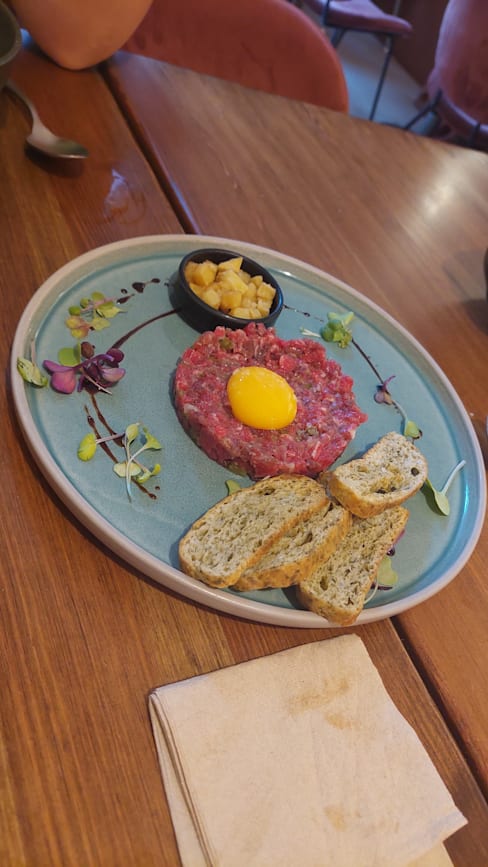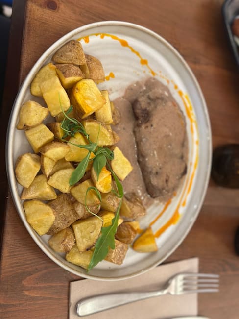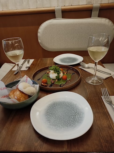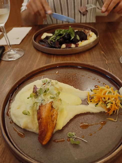 9/10Cake tasted too buttery (carrot). Croquettes were delicious 9.5/10. Solomillo 8.5/10. Carrillera 8.5/10. Server was friendly. Overall a great experience although we weren’t able to get the 50% off was a worthy experience. Would recommend though to clean the bathrooms often.