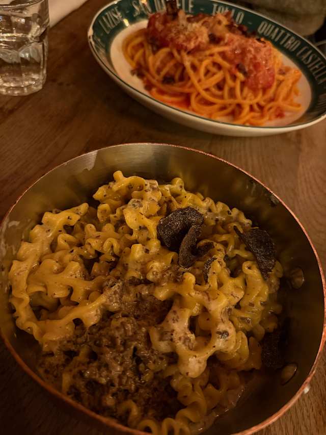 5.5/10We immediately understood that this restaurant was built for TikTok and to accommodate a high volume of guests. The servers were kind and efficient, but almost mechanical in their extreme level of efficiency. We felt like we were in a well-oiled culinarily factory. The interior was intense and each room overwhelming in its decor. Like wine bottles? Let’s make a dining room with thousands of them on the wall! Like plates? Let’s cover an entire room with plates! Very photogenic — even cinematic — but far from intimate. Felt like I was on a photography set. Menus on cell phones did the expected. Everyone was on their cell phone. The food might have been amazing, but I don’t really remember it, given the mechanized feel of the experience.