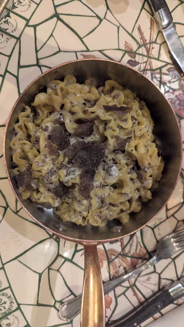 - Mafalde à la crème de truffe et mascarpone, truffe fraîche de saison râpée