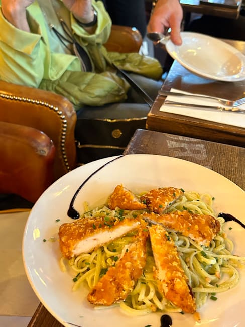 10/10Super happy with everything, its the 5th time I have been there. Only issue is that my mom had today the beef bourgignon casserole and there was only 2 pieces of vegetables, could have expected a bit more. We also had a chicken Burguer which was delicious, and equally as good fish and chips.