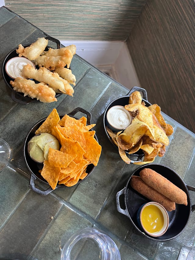 5/10We orders a number of tapas for 4 people. The cod fritters were pretty good but that was about it. We had fries and they were not even edible. Seemed like they were cooked in a microwave. Told the waiter and he just shrugged his shoulders. Rest is the tapas were just ok. Main dishes were pasta and a rice dish. We ordered the duck rice but it came with more pork than duck and it was all over cooked. Once we finally got the bill and tracked down our waiter to pay he then wanted us to tip on the machine but wouldn’t show it to me. I said I would leave cash and he just grunted and shoved the machine into my hand… I did not tip after that. As we walked away and he noticed I didn’t tip he just scowled at us until we were would out sight. We won’t be back. It’s too bad since this was a suggestion in a Rick Steve’s guide book.
