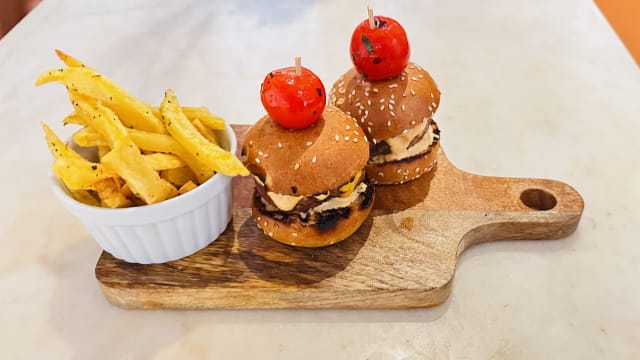 Mini hamburguer com batatas fritas