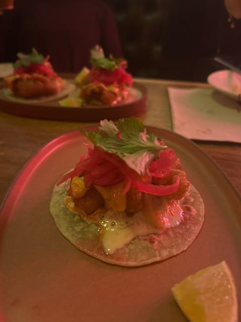 7.5/10Prawns were very fishy and the language barrier made the ordering a bit difficult. We tried to order 3 orders of tacos but the waiter misunderstood and ordered us 6. When it came to the table we explained the misunderstanding and the staff wouldn’t take it off the bill. Tacos were okay for how expensive they were.