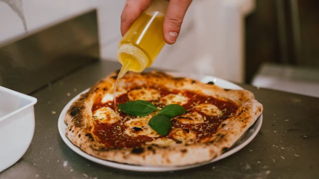 Tomate san marzano DOP, polvo, alho laminado, mozarella fumada, flocos de chili, parmesão 24 meses cura