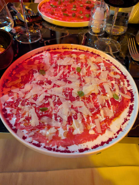 8/10Overall one of the best restaurants we visited during our trip to Rom. The carpaccio was perfect and worth the visit by itself. Took a bit to long to get out wine served and one steak was overcooked but also corrected in a timely manner by the restaurant. As Swedish people we were missing some sauce on the menu to go with the steaks but more personal opinion than a restaurant fault =)