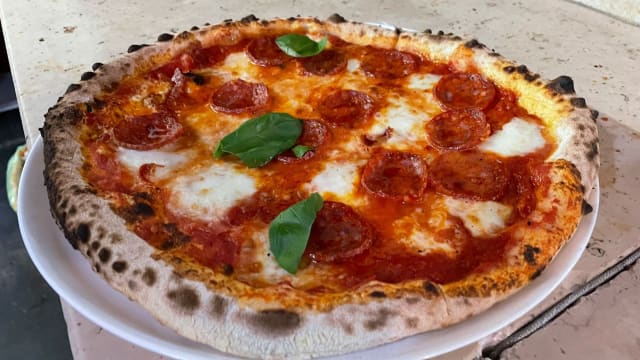 Base bianca, mozzarella, mortadella, stracciatella, crema di pistacchio