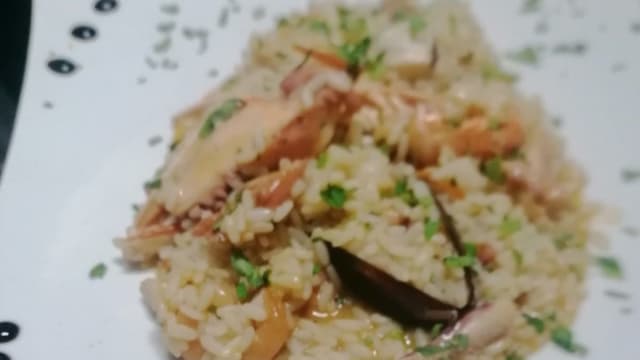 Risotto con frutti di mare,cozze polipo,gamberetti,seppia.